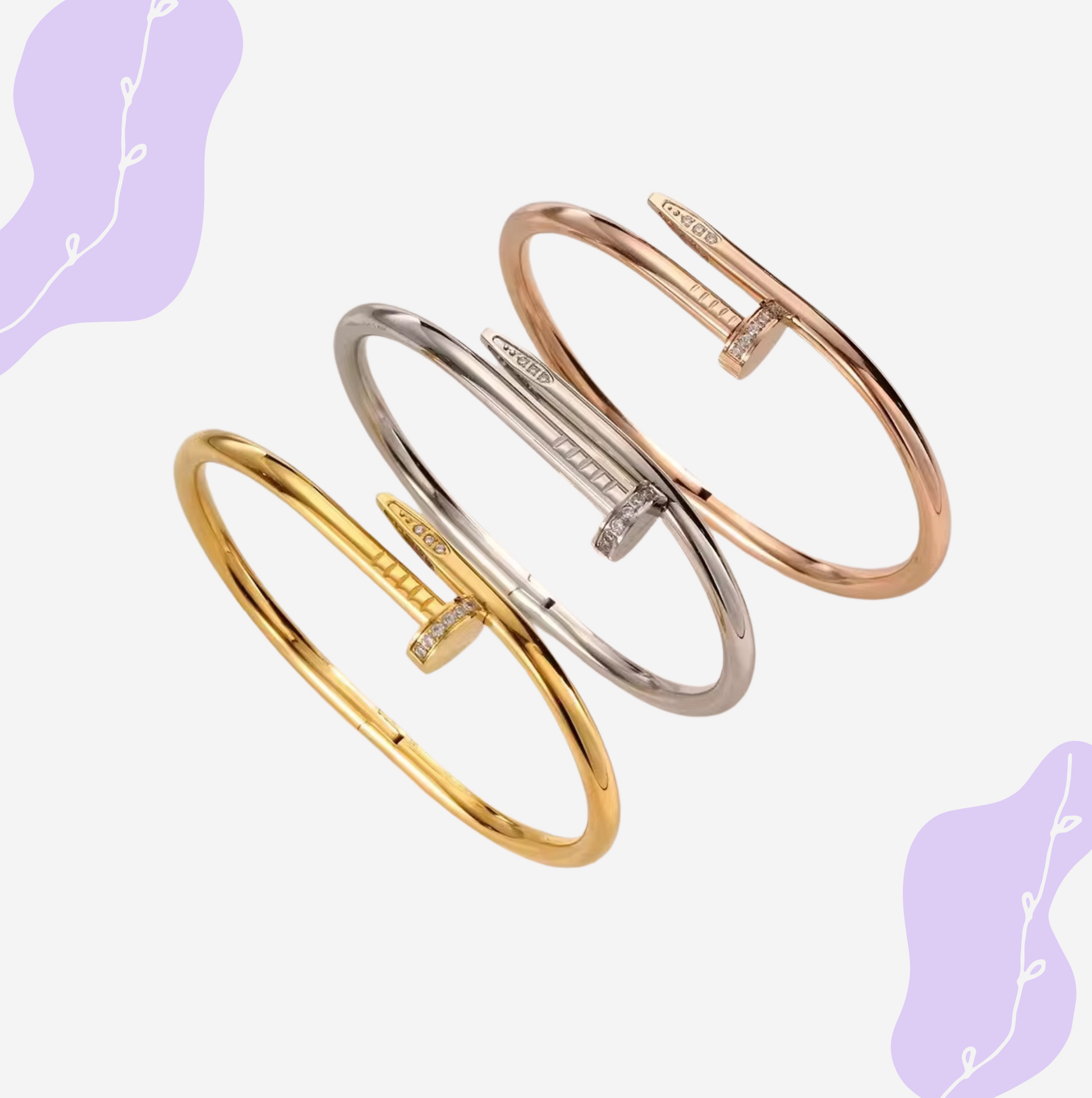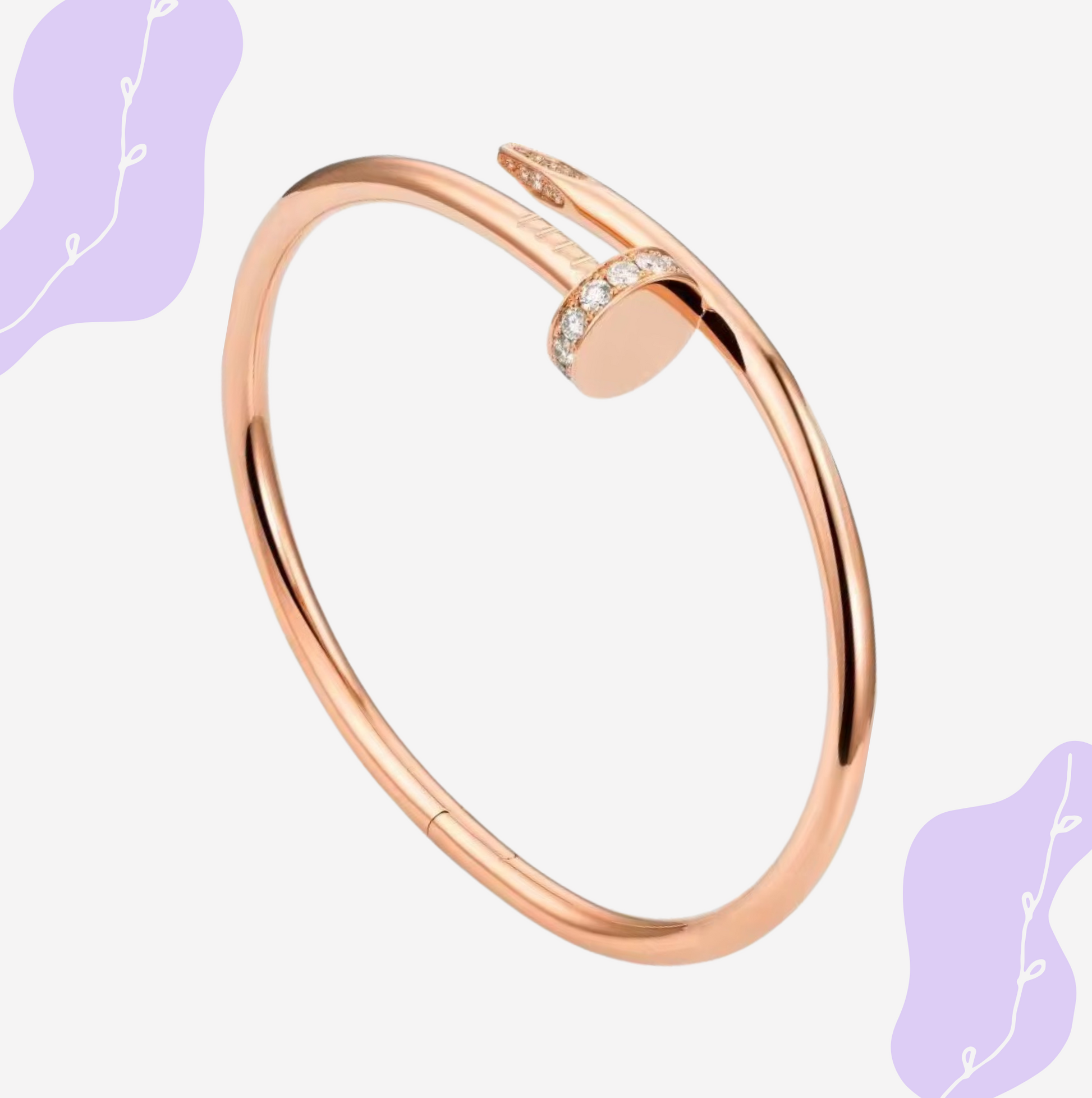 Eleganter Armreif im angesagten Nagel-Design aus 925er Sterling Silber, veredelt mit funkelnden 5A Zirkoniasteinen. Erhältlich in Silber, Roségold und Gold. Wählbare Größen: 17 cm oder 19 cm Durchmesser. Feminin geschwungene Form für stilvolle Akzente.
