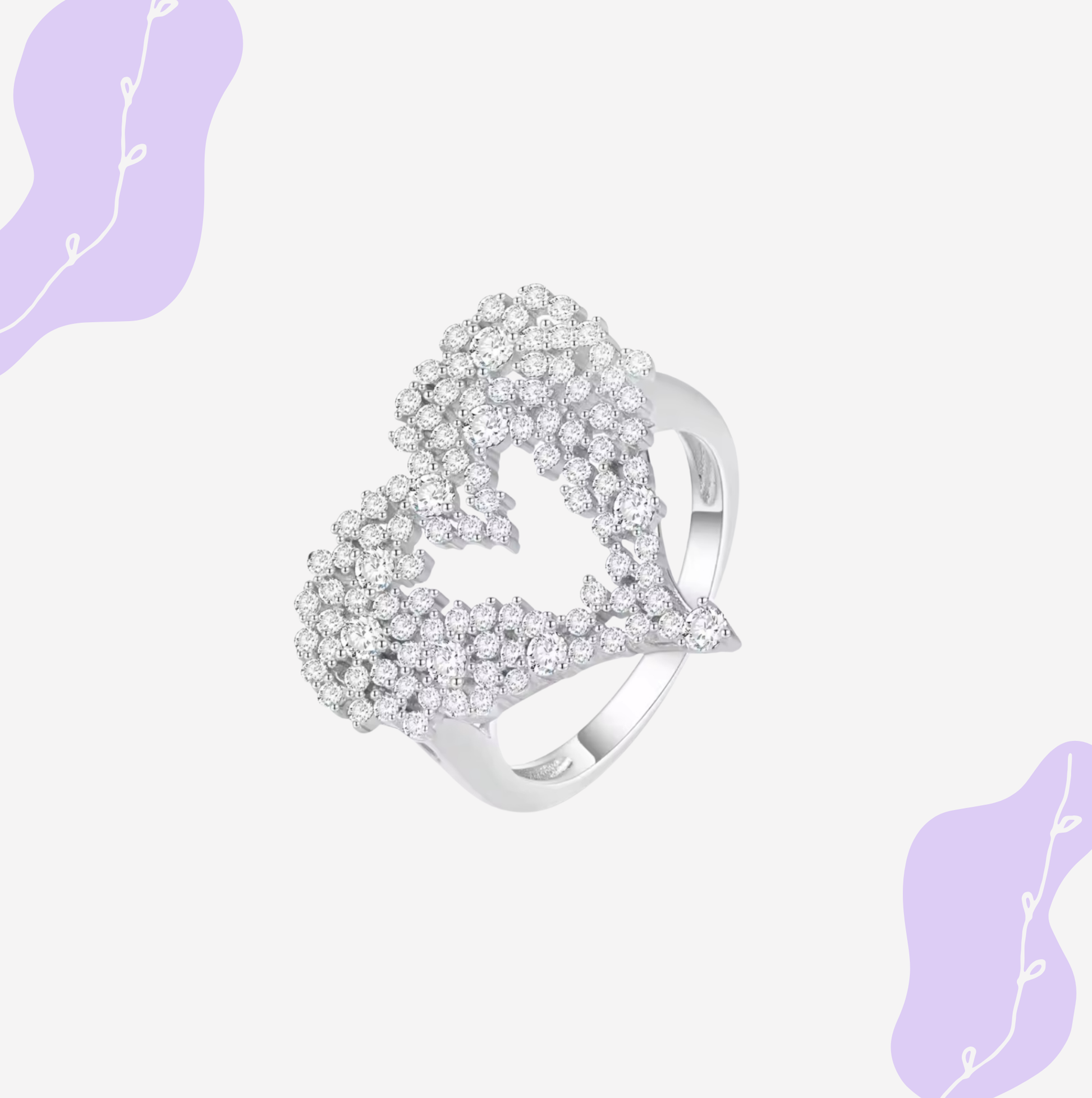Strahlend wie die Liebe selbst. Herzlicht ist ein kunstvoll gefertigter Ring aus 925er Sterling Silber, veredelt mit edlem 18 Karat Gold. In seiner eleganten Herzform funkeln sorgfältig gefasste Moissanit Steine mit einem Gesamtgewicht von 1,5 Karat. Sie überzeugen durch ihre außergewöhnliche Reinheit der Stufe VVS1, der Farbe D und werden mit einem GRA Zertifikat geliefert.