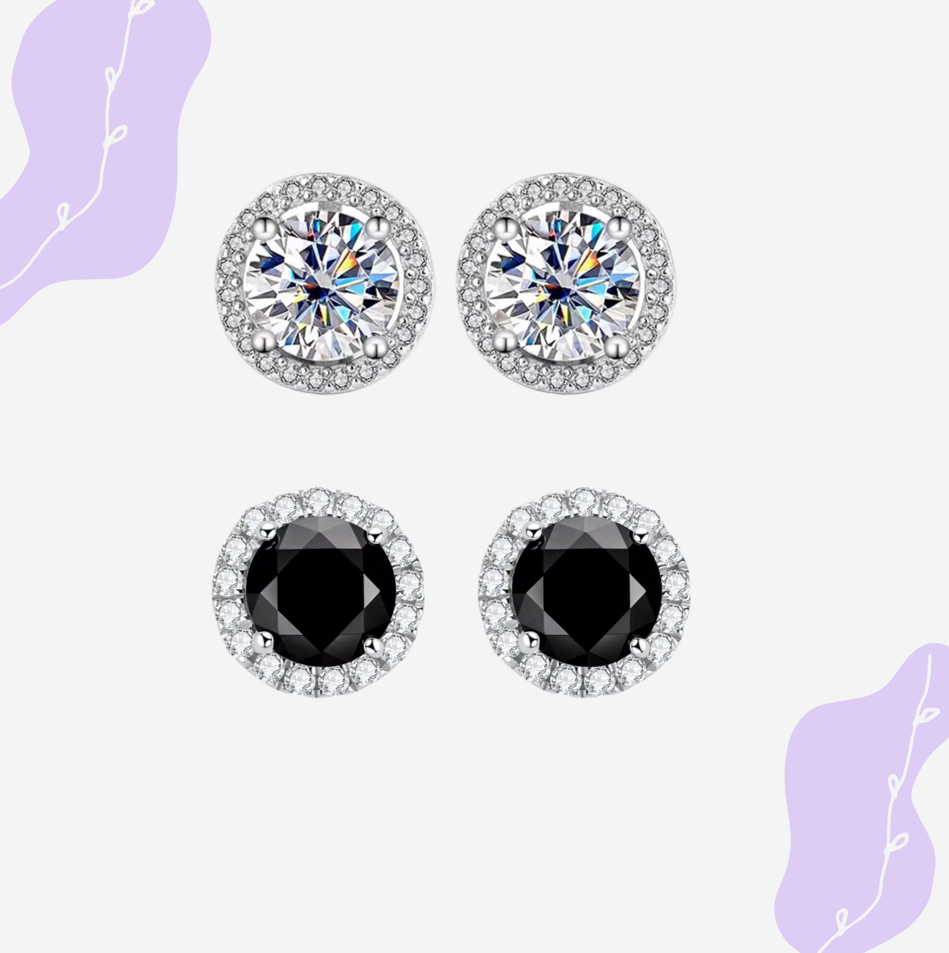 Mittelpunkt strahlt ein 1 Karat Moissanit in Weiß oder Schwarz mit VVS1 Klarheit, begleitet von feinsten 5A Zirkonia Steinen. Jeder Moissanit ist GRA-zertifiziert und funkelt so klar wie ein echter Diamant. Stilvoll. Hochwertig. Und gemacht für deinen Moment.